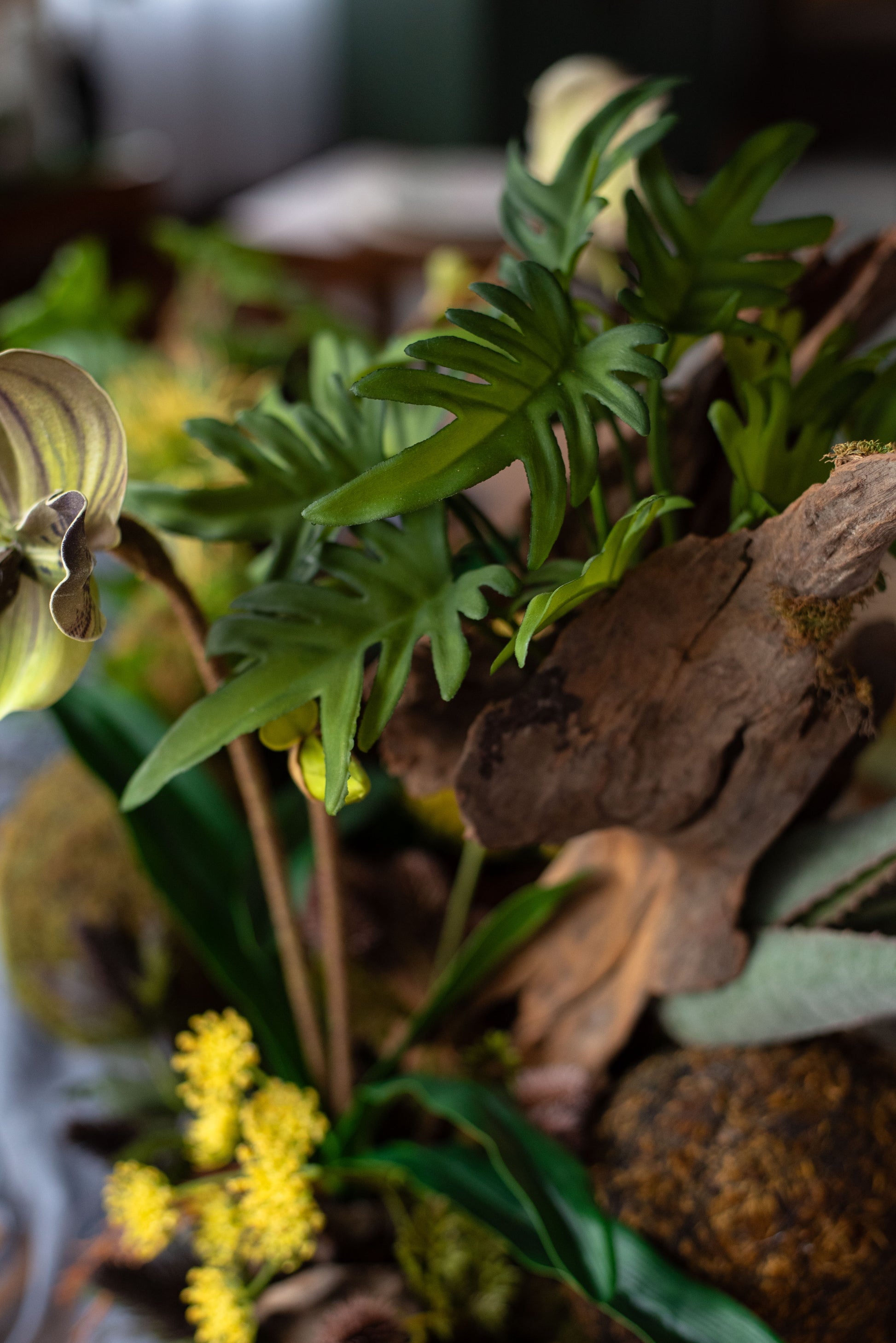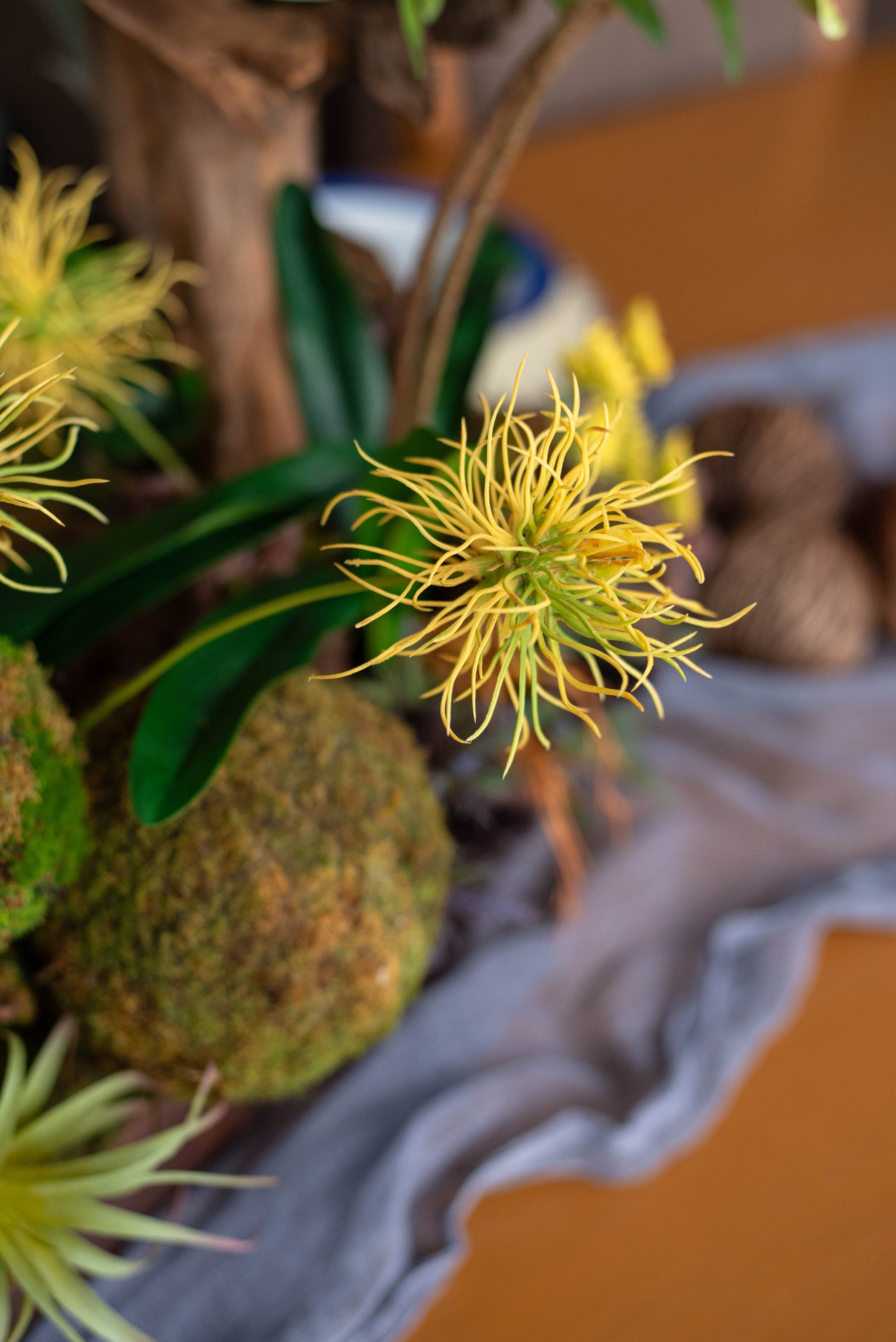 Up close and personal with the details. Every element of this arrangement is designed to mimic nature while adding an artistic touch.